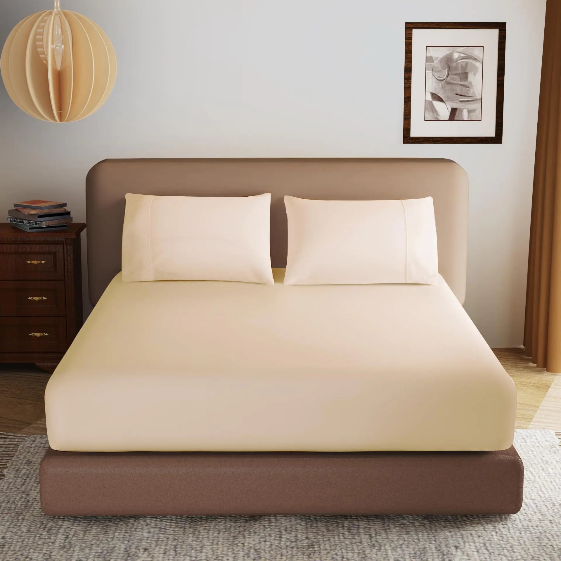 100% Egyptian Cotton Fitted Sheet Twin Size 600 Thread Count Single Fitted Sheet Only8”-16" Deep Pocket Sheet Soft & Elastic Sateen Weave Bottom Sheet for Home(Beige Twin)