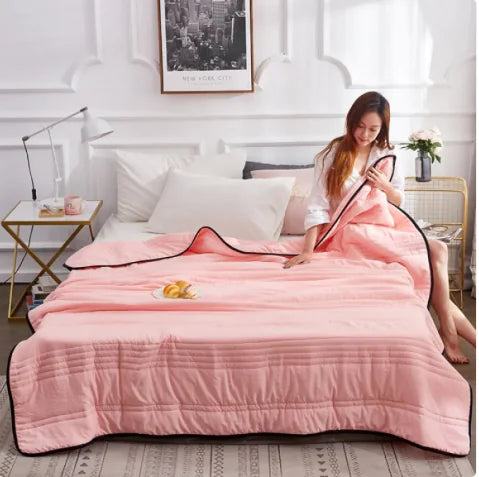 Cool Breeze Cotton Quilt is a lightweight, thin quilt made from soft, washed cotton, designed to keep you cool during the summer months. Perfect for use with air conditioning, this breathable quilt provides comfort without the heavy warmth. It’s machine washable for easy care and maintenance, making it a practical and convenient option for any season. Whether for a bed or as a throw, the Cool Breeze Cotton Quilt offers a refreshing, cozy feel, ideal for a good night's rest or relaxing on a warm day.