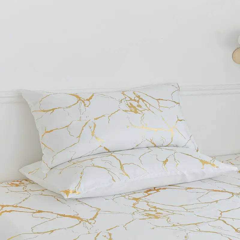 Marble Pattern Fitted Sheet Set with Pillowcases