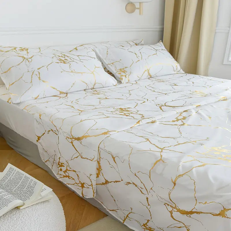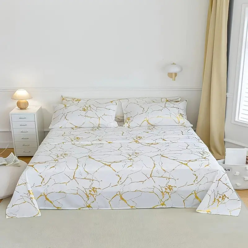 Transform your bedroom into a tranquil retreat with our beautiful Marble Pattern Bedding set. This exquisite three-piece collection includes a fitted sheet, a flat sheet, and one or two pillowcases, all designed to bring a touch of elegance to your sleep space.