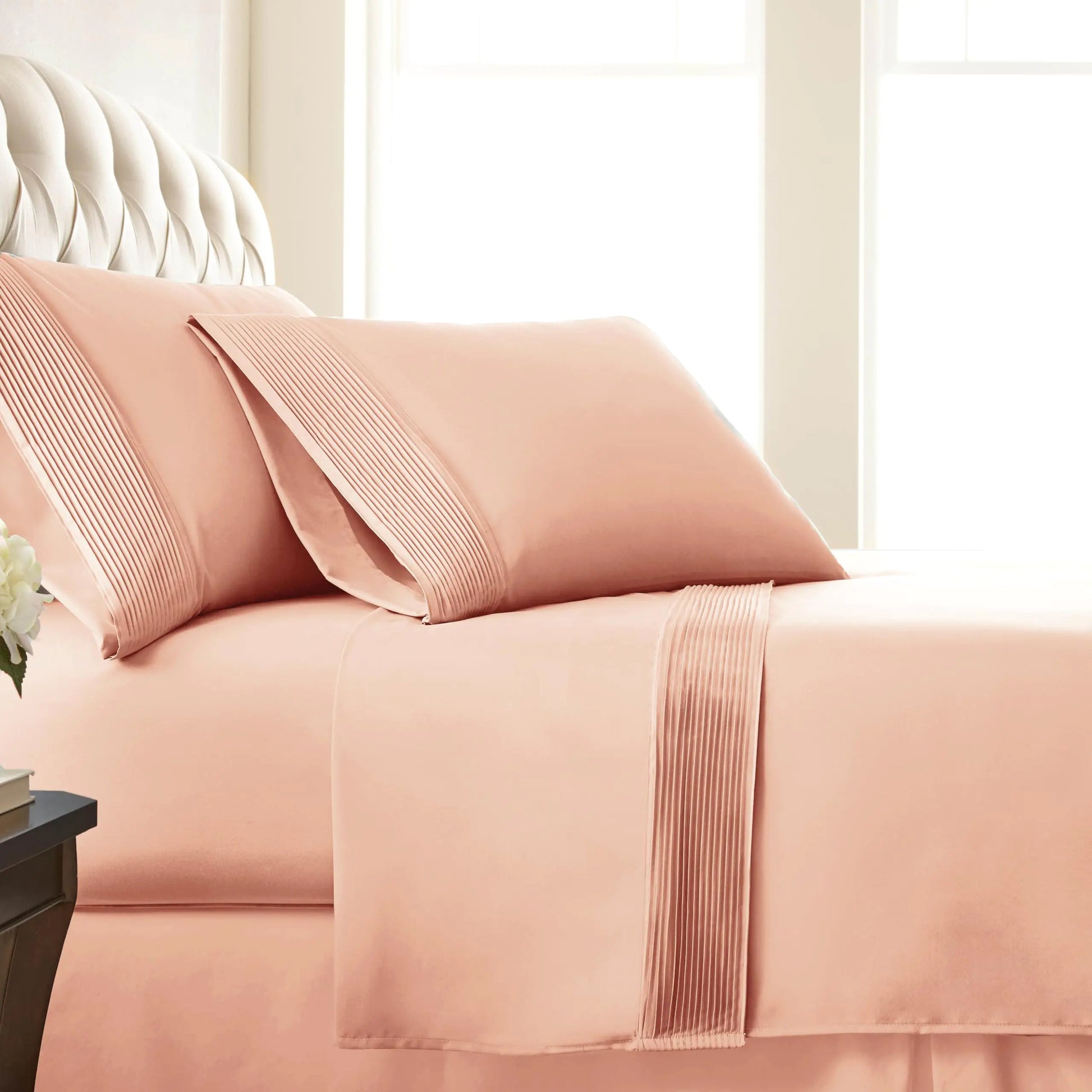 Southshore Fine Living Inc. King Size Pleated Sheets Set 4-Piece 21" Extra Deep Pocket Sheets King Size | Flat Sheet Fitted Sheet 2 King Pillowcases | Easy Care Microfiber Bedsheets | Blush