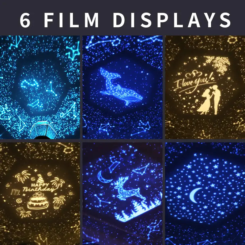 Each purchase comes complete with everything you need: 1 Star Projector night light, 6 projection films, 1 USB cable, and a user manual. Create a cosmic escape in your home and let the stars shine down on you.