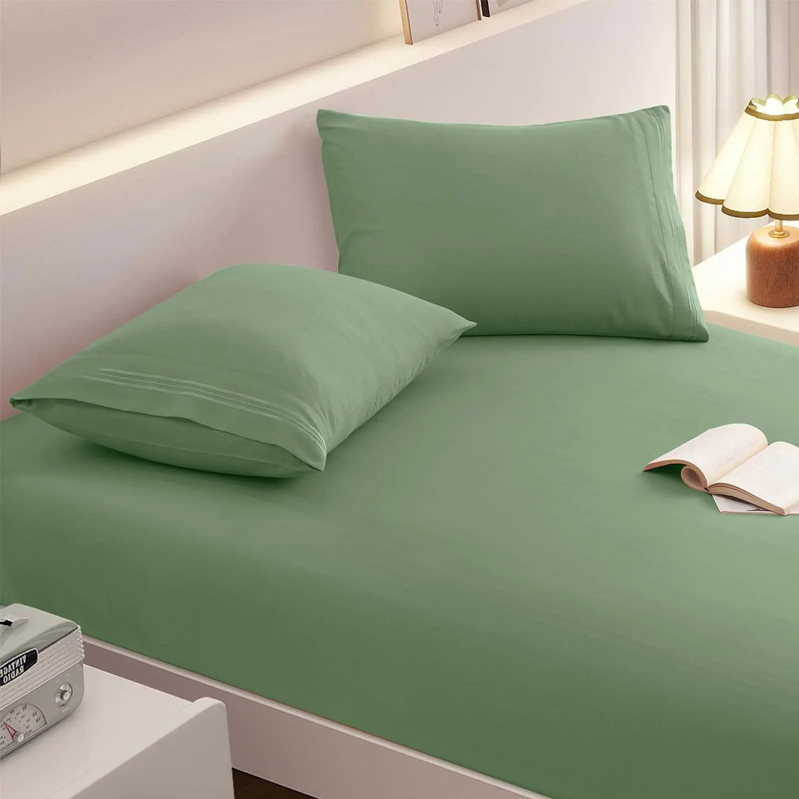 [·What Will You Get: You will receive soft microfiber 1 x twin fitted sheet and 1 x 3-thread pillowcases The twin fitted sheet size is 75"x 40" and the pillowcase size is 20"x 30". Our fitted sheet comes in standard sizing suitable for most mattresses. ·Deep Pocket Design: Our fitted sheet designed with 16" deep pockets with strong and durable elastic straps ensures a snug fit on various mattress thicknesses preventing sheet slipping and wrinkling providing comprehensive mattress protection. "·Soft and Comfortable: Our comfortable sheets made of super soft microfiber material. Resistant to fading wrinkle-free lightweight and soft bringing you the ultimate enjoyment of a full nights sleep improving the quality of your sleep and welcoming the first ray of sunshine in the morning with peace and comfort." "·Suitable for All Seasons: As your long-term sleeping companion our sheet provides an ideal sleeping environment whether its a hot summer day or a cold winter day. Warm in winter and cool in summer warm and breathable for durability." ·Easy Care: Our sheets are easy to clean wear-resistant fade-proof and wrinkle-resistant you can feel free to hand-wash or wash in a washing machine and then tumble dry on low temperature but please do not bleach and dry-clean to ensure that the sheets remain in good condition for a long time.]